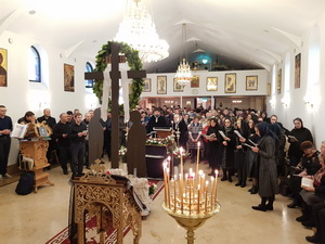 În ajun, sâmbătă seara 28 Aprilie, s-a slujit o Vecernie Arhierească şi Pan-Ortodoxă prezidată de Înaltpreasfinţitul nostru Arhiepiscop şi Mitropolit +Iosif, împreună cu un sobor de 15 preoţi şi un diacon, între care şi parohii Bisericilor Ruse şi Antiohiene din Dublin.